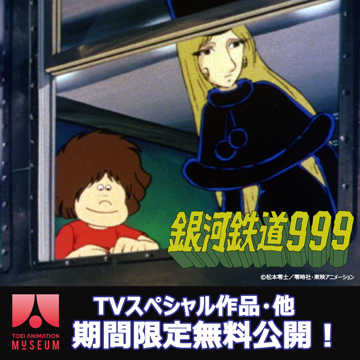 期間中、TVアニメシリーズ「銀河鉄道999」(全113話)をもとに再構成されたTVスペシャル作品や、1980年「東映まんがまつり」で公開の短編映画「銀河鉄道999 ガラスのクレア」を、YouTubeで各作品2週間の期間限定で公開いたします!この機会に、アニメ作品もたくさんお楽しみください。